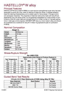 Specialty-Metals-Haynes-W Alloy-Data-Sheet